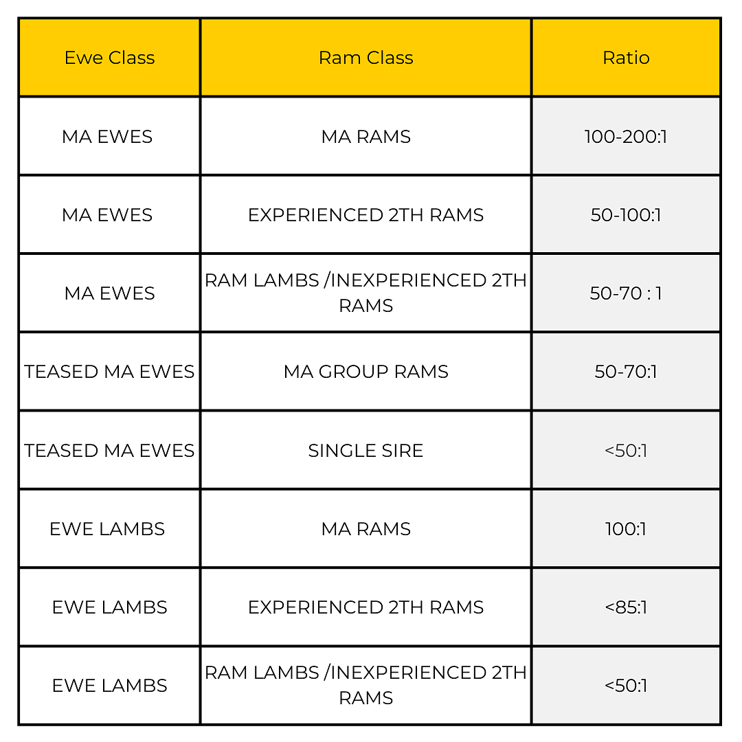 If you are joining in large paddocks with multiple watering points, or you are joining outside of the main breeding season, consider increasing ram percentages. And keep in mind that maiden and adult ewes are best joined separately, as they have different ram requirements.